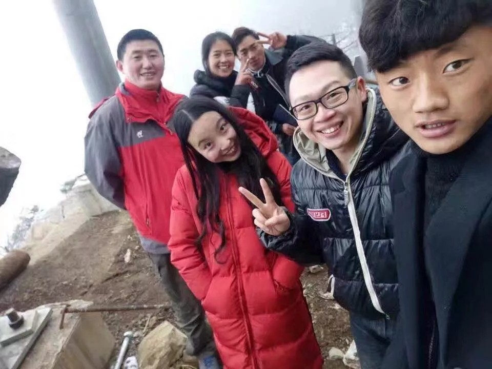 M:還真的有一件事挺難忘的,還很驚險。我記得有一年去外地工作,去到了一個雪山上,是那種真正的雪山,一望無垠。那時候因為項目原因,要到雪山上去調研,可是上山的路極其難走,我和同去的小伙伴是抓著有刺的植物和修纜車留下來的電線,在將近六七十度的陡陂攀爬上去的。由于路實在太難走,又摻雜著一些意外,我和大伙兒走散了。在茫茫的雪山上我重心不穩,一不小心翻了幾個跟頭,差點掉了下山。幸虧小伙伴們立刻找來了幾個當地人,大家一起找我,最后我才得以脫險。說真的,挺感謝他們,不然后果不堪設想~對了,最后我們還拍了個合影來紀念這段令人難忘的旅程。我現在想起來,覺得雖然驚險,但也成功地突破了自我,感覺很棒。